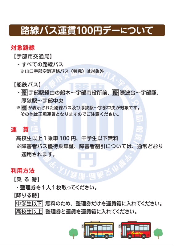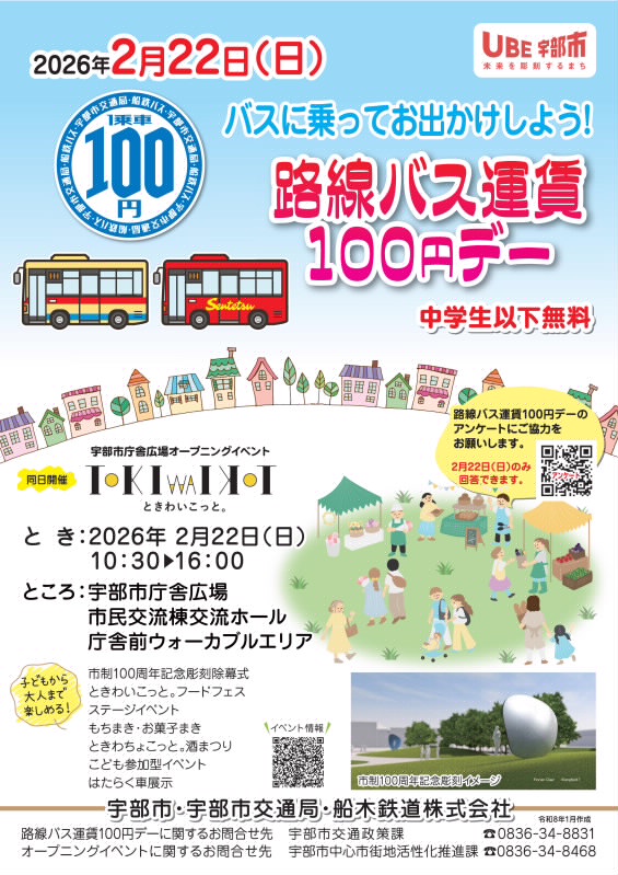 2026年2月22日(日)に宇部市路線バス100円デーを実施します。